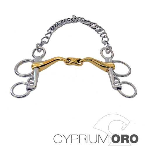 Nueva colección SEFTON CYPRIUM ORO realizada con los diseños más actuales tanto para el confort del caballo como para conseguir el máximo redimiento deportivo. La materia prima utilizada CYPRIUM esta realizada a base de una aleación de cobre y acero inoxidable que permite una mejor salivación del caballo y una temperatura óptima de la embocadura dentro de la boca del caballo durante su utilización.