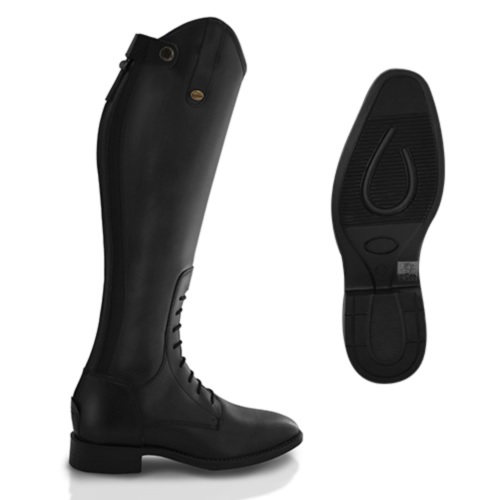 Bota de montar inglesa realizada 100% de cuero real de primera calidad. Incorpora forro interior CAMBRELLE absorbente del sudor. Cordones elásticos en el frontal a la altura del empeine. Anatómica con diseño con el tobillo moldeado para una mejor sujeción y elástico trasero para un ajuste perfecto.