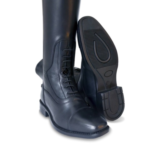 Bota de montar inglesa confeccionada con cuero de alta calidad muy suave que le confiere un alto rendimiento y confort. Forro interior de cuero y cremallera en la parte posterior con cierre de seguridad, tira protectora de cuero y elástico lateral para una mejor adaptación a la forma de la pantorrilla. Cordones elásticos en el frontal a la altura del empeine. Bota con forma muy anatómica que confiere una gran sujeción en la zona del tobillo y puntera de estilo actual. También posee soportes laterales en la zona del talón para una mejor colocación de las correas de espuela.
