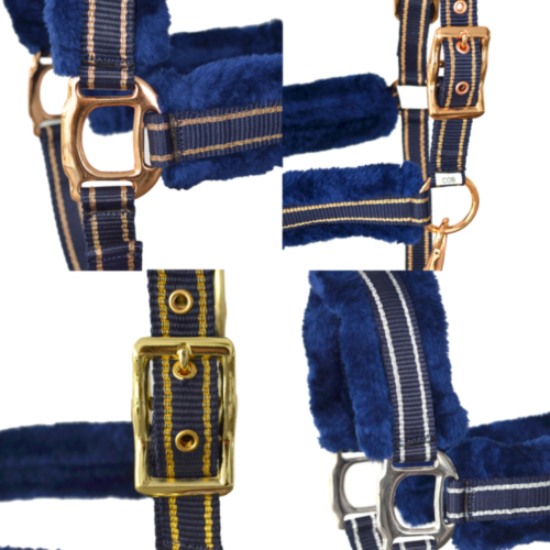 Cabezadas de cuadra de nylon con un impecable acabado y refuerzo acolchado y suave tanto en testero como muserola. Posibilidad de ramal a juego.