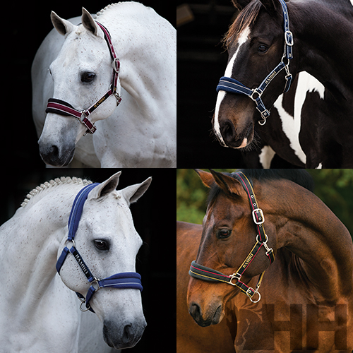 Cabezada de cuadra en nylon con refuerzo de forro polar grueso en muserola y testero.