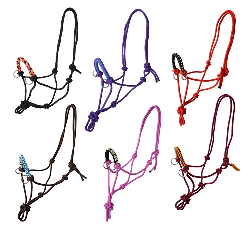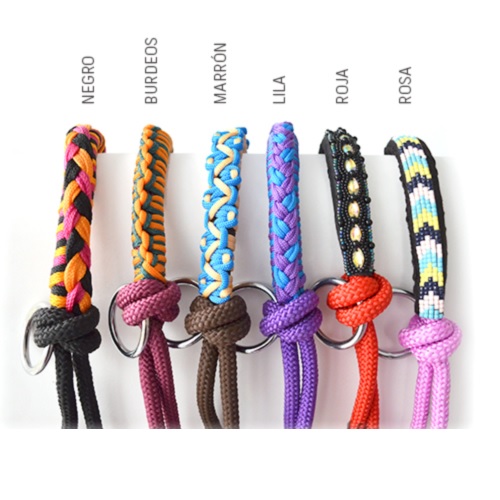 Realizadas con cordón de primera calidad y con tope de goma en los extremos. Doble cordón en muserola y testero. Se comercializa en distintos colores con un elegante adorno en muserola dependiendo del color de cordón. También incorpora dos anillas a cada lado de la muserola para poder utilizar en diversas actividades como cabezada de cuadra, para dar cuerda, para montar, etc