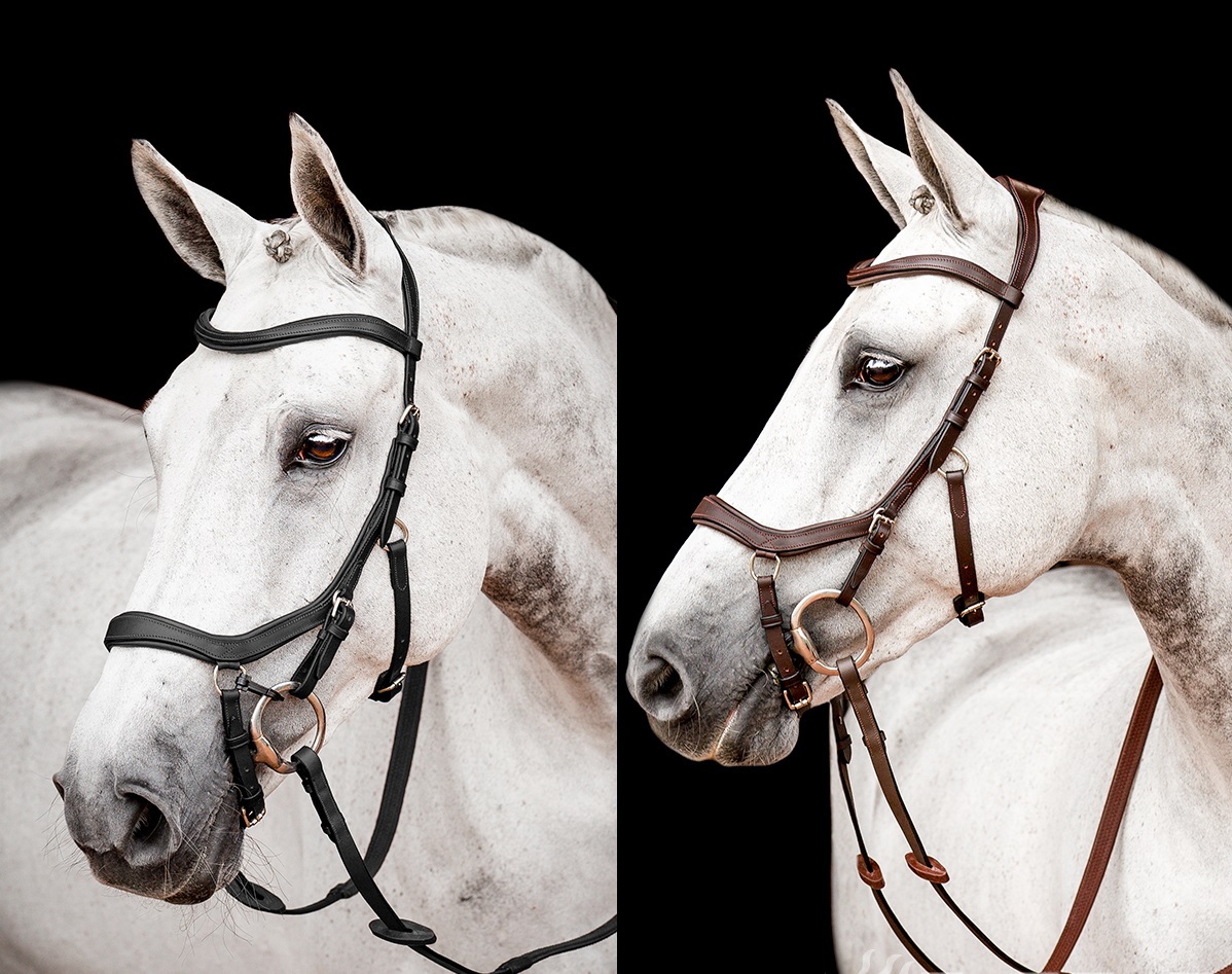 Su diseño inteligente considera la comodidad de la boca interna y disipa los problemas de entumecimiento en la parte inferior de la cara asociados con la presión nerviosa innecesaria. La muserola minimiza aún más las molestias o las restricciones respiratorias que pueden estar asociadas con las muserolas caídas de ajuste bajo. El diseño inteligente de la cabezada elimina cualquier posible molestia y dolor debajo de la lengua causado por una presión innecesaria, lo que le permite una comunicación refinada con su caballo sin dolor.
