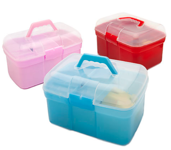 – Caja limpieza de plástico muy ligera con asa y bandeja portaobjetos. Medidas 31,5x21x20 cm