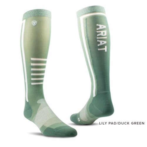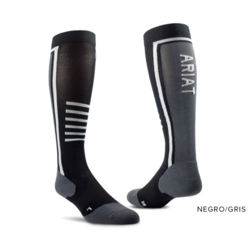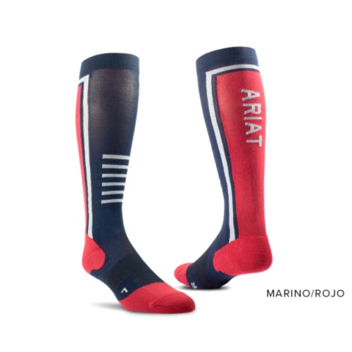 Entra en la comodidad con los calcetines AriatTEK® Slimline Performance. Estos calcetines y su exquisito diseño, ofrecen un acolchado específico para los pies del jinete y le brindan una excelente comodidad en sus botas de montar durante todo el día.
