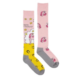 Los calcetines de montar Happy Pair transmiten buen humor con sus motivos divertidos y únicos sobre caballos, perros y jinetes. Los calcetines de diferentes diseños sólo quedan perfectos juntos en un par. El algodón de alta calidad garantiza un confort perfecto para tus pies. Las medias tienen una plantilla y un talón reforzados, así como un puño elástico en la parte superior para un ajuste seguro.