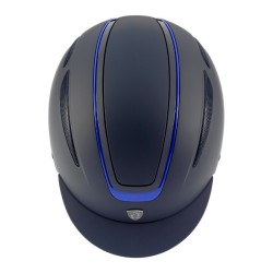 Casco de equitación Tattini con perfiles brillantes. Placa lisa, visera más profunda, dobles rejillas de ventilación laterales, forro desmontable y lavable, carcasa de ABS, cierre ajustable, ruedecilla trasera con regulación milimétrica. Aprobación CE VGI, certificación TÜV.