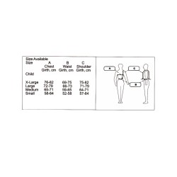 Provisto de cremallera delantera con ribete de protección y cinturón elástico regulable con hebilla desenganche rápido, muy flexible y ligero. Revestimiento exterior en resistente nylon y rejilla, revestimiento interior 82% nylon, 18% spandex, paneles en goma espuma para el forro. Óptima caída gracias a la regulación con velcro en hombros y cintura, homologado CE EN 13158 2009 Beta 3
