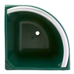 Práctico comedero angular para caballos para colocar en una esquina del establo o box.