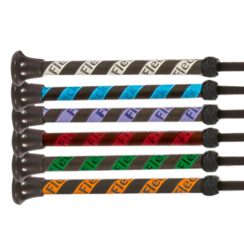 Fusta con tralla, el cuerpo realizado con fibra de vidrio recubierto con un tacto similar a la seda, empuñadura de cuero sintético y tope de plástico. Ahora disponible en pack de seis fustas de colores actuales. La bolsa incluye una fusta por cada uno de los colores gris, azul, morado, rojo, verde y naranja.