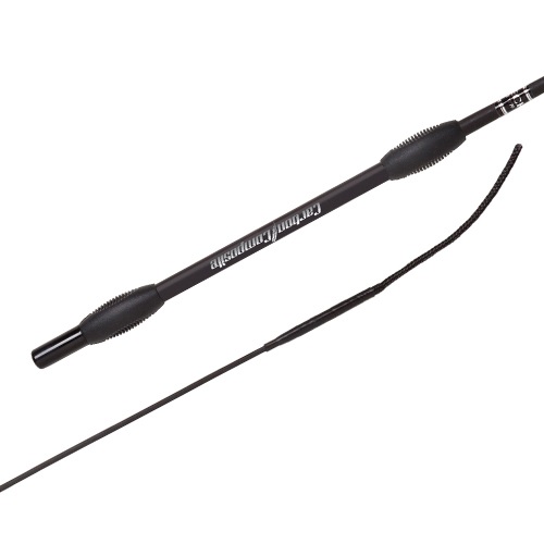 Fusta ultra ligera con tralla. La empuñadura incorpora el sistema de equilibrio FELDMANN mediante topes de goma.