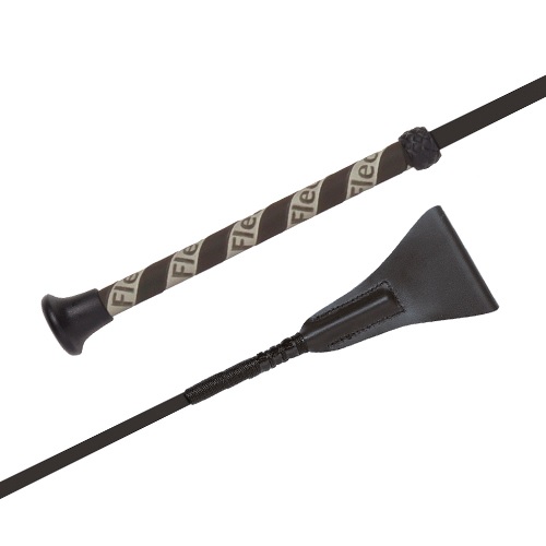 Fusta con lengüeta, el cuerpo realizado con fibra de vidrio recubierto con un tacto similar a la seda, empuñadura de cuero sintético y tope de plástico. Ahora disponible en pack de seis fustas de colores actuales. La bolsa incluye una fusta por cada uno de los colores gris, azul, morado, rojo, verde y naranja.