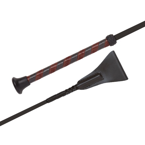 Fusta con lengüeta, el cuerpo realizado con fibra de vidrio recubierto con un tacto similar a la seda, empuñadura de cuero sintético y tope de plástico.