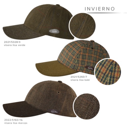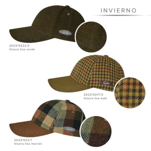 COLOR | 2021/5328/3 visera lisa verde, 2021/3036/8 visera lisa beige, PERTH, 2022/5160/7A visera lisa marron, 2022/5309/2 visera lisa kaki, 2022/5065/3 visera lisa camel, 2023/3215/8 visera lisa burdeos, 2023/5322/3 visera lisa verde, 2023/5017/3 visera lisa kaki, 2024/5334/7 visera lisa marino, 2024/5334/8 visera lisa marron, 2024/3215/8 visera lisa kaki, 2024/3178/3 visera lisa kaki, 2024/3320/3 visera lisa marino |