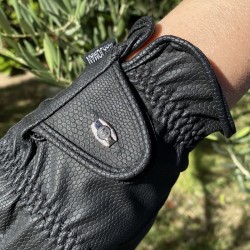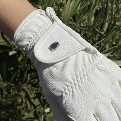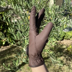 Guantes para jinete, para practicar la equitación en competición o en el uso diario. Protegen la mano del roce producido por la riendas. Su fino tejido con suave relieve es muy elegante, por lo que combinan muy bien con la vestimenta de concurso. Muy cómodos para montar a caballo y con buen agarre.