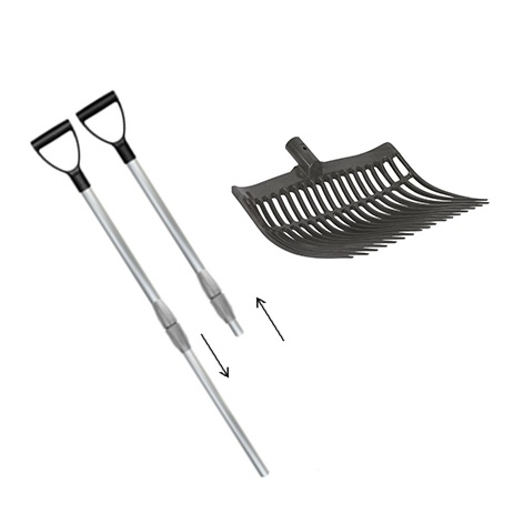 Juego completo de horca de plástico VPLAST (ref.03903) y mango de aluminio telescópico para poder adaptarse fácilmente a la altura del usuario, tanto niños como adultos.