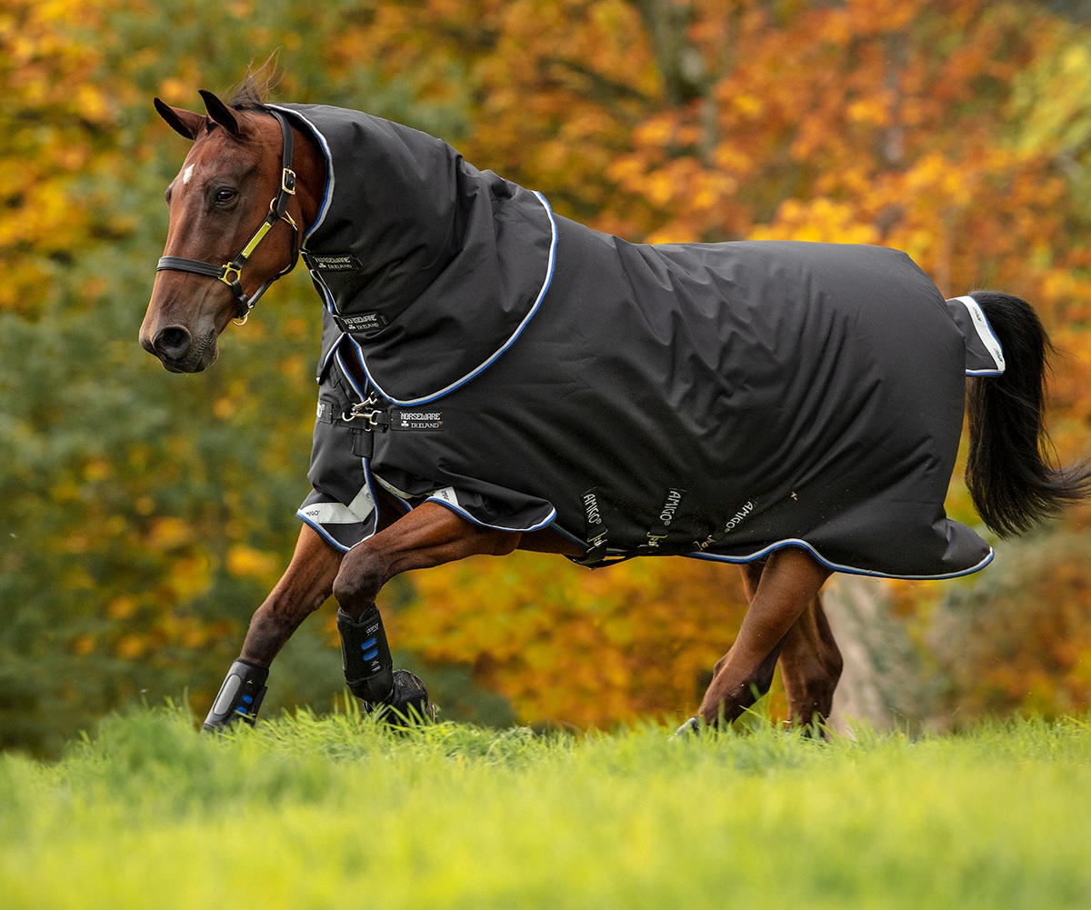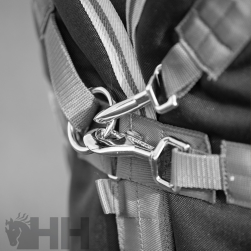 Nuestro sistema de cierre frontal en V seguro y fácil de usar, el cuello Surefit y el exclusivo diseño de arco de doble pierna permiten que su caballo se mueva y paste sin restricciones, mientras que el diseño de tres cinchuelos cruzados, la solapa de la cola y la correa de la cola ofrecen un ajuste ceñido y cómodo. Se incluye una capucha desmontable para mayor flexibilidad en la elección y tiras reflectantes para mejorar la visibilidad al salir, entrar o para controles nocturnos con antorchas. Amigo® tiene cubiertas sus necesidades y las de su caballo.