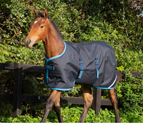 Impermeable y transpirable. Poliéster exterior 600 D. Relleno de 200 g. Ajuste especial que permite que la manta crezca con su potro, puede expandirse hasta 6″ (15 cm) de longitud.