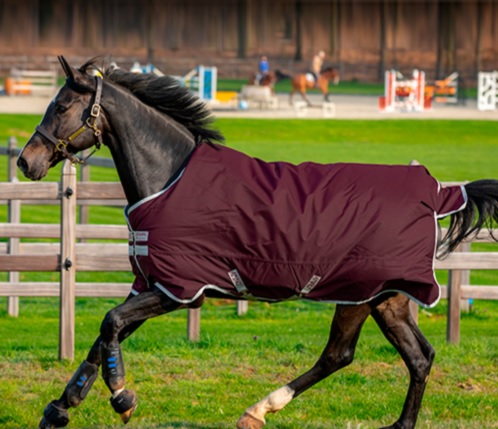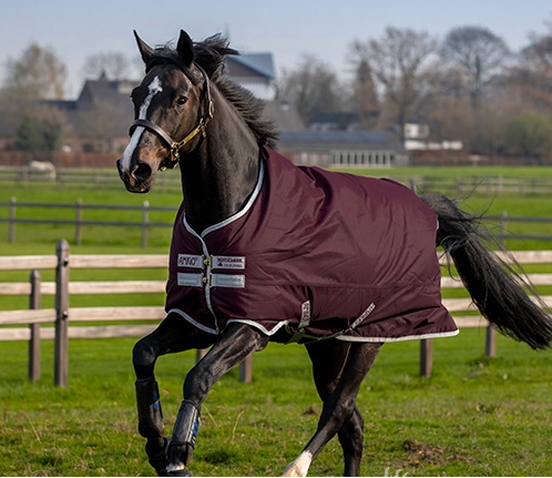 Manta totalmente impermeable y transpirable. Realizada en poliéster exterior 600D muy resistente y relleno de abrigo de 50 gr. Incorpora el sistema patentado de diseño en arco para la posición de las manos del caballo y que éste pueda moverse con total libertad. Forro interior suave pero resistente realizado en poliester.