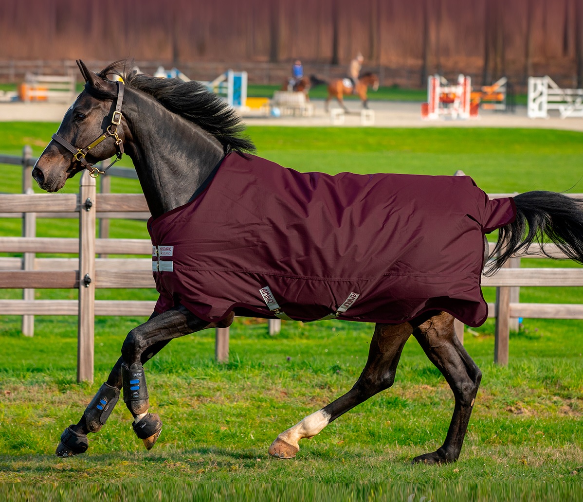 Manta ligera y fina pero con forro polar en su interior que aporta un cierto nivel de abrigo. Manta totalmente impermeable y transpirable. Realizada en poliéster exterior 600D muy resistente. Incorpora el sistema patentado de diseño en arco para la posición de las manos del caballo y que éste pueda moverse con total libertad.