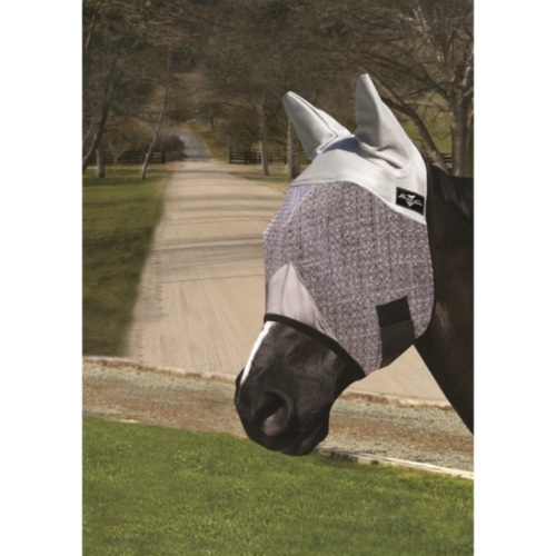 Máscara contra insectos realizada con un nylon muy resistente con capacidad de protección frente a los rayos UVA. Para asegurar el máximo confort, la máscara está diseñada con una malla transpirable y delicada alrededor de las orejas y testera. El poliester utilizado es ligero, resistente y fresco, con una tecnología anti-roturas. Su diseño, con plieges colocados para proteger los ojos del caballo, ayuda a mantener intacta la visión del animal y con ayuda de los cierres con velcro, garantiza que la máscara se mantenga en su posición.