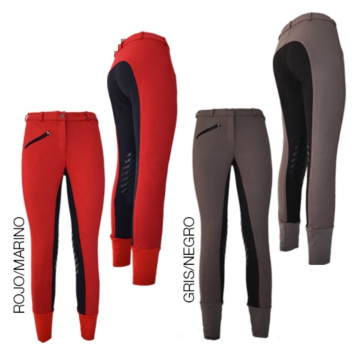 Pantalón ajustado de mujer realizado en algodón elástico que le otorga una gran comodidad. Pantalón con bolsillo frontal con cremallera y ribete. Refuerzos de silicona en el interior de las rodillas para un mayor agarre a la silla de montar.
