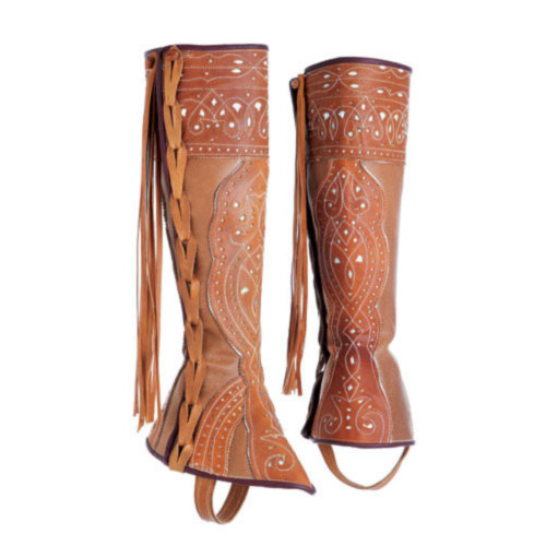 (Al igual que los Zahones se clasifican según la cantidad de adornos o repujado que lleven). Realizadas de manera artesanal utilizando piel de becerro engrasada de primera calidad. Posibilidad de realizar bajo medidas especiales.