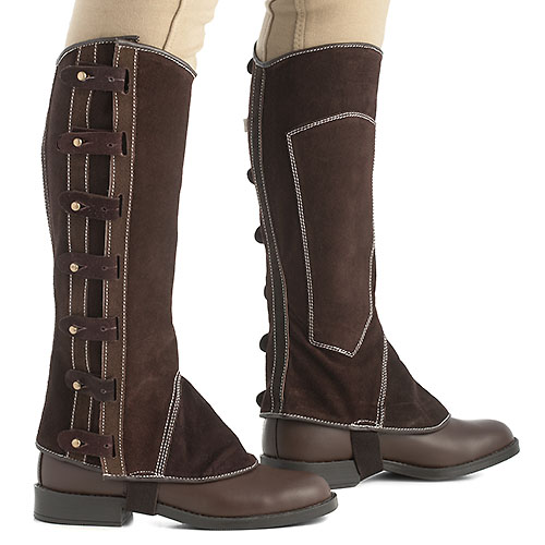 Polainas tipo portugues realizadas en serraje. Refuerzo en la parte interior.