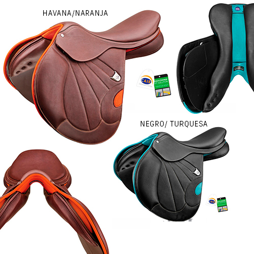 – SWEETSPOT: centro de gravedad del asiento de la montura ligeramente adelantado para facilitar tanto la posición del asiento del jinete de alto rendimiento como su predisposición a los movimientos del salto.