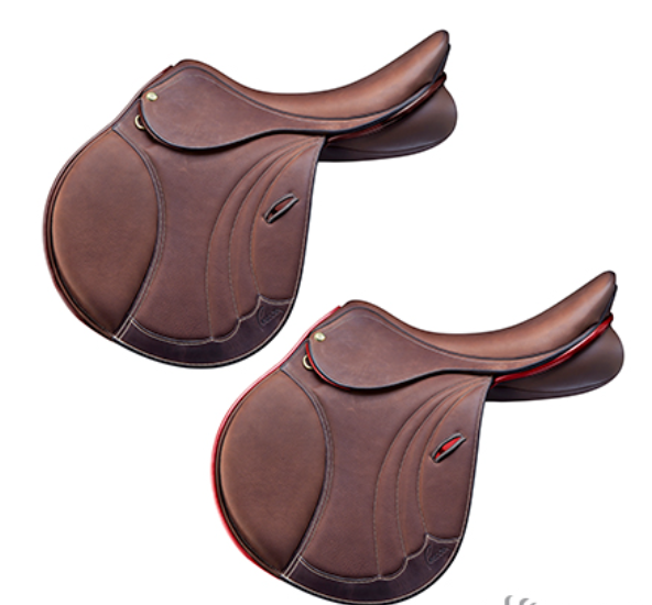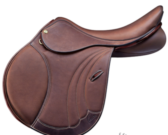 Cuero francés doble muy engrasado y con mucho agarre de extraordinaria calidad. Nuevo diseño exclusivo de los faldones, asiento más ancho de lo normal, rodillera de doble acolchado y tacos traseros movibles mediante velcros.